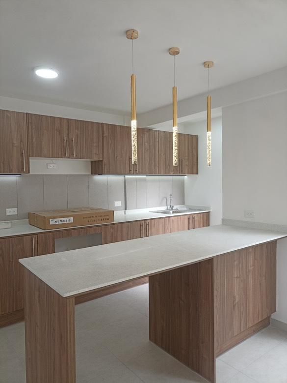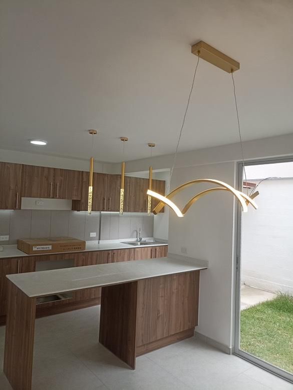2. Rose Gold Water Drop Lamp by Gnowee es una lámpara colgante de un solo cuerpo con luz led cálida incorporada. Su vista de luz es puntual y su presentación sofisticada y moderna. Ideal para la isla de cocina o sobre los veladores.