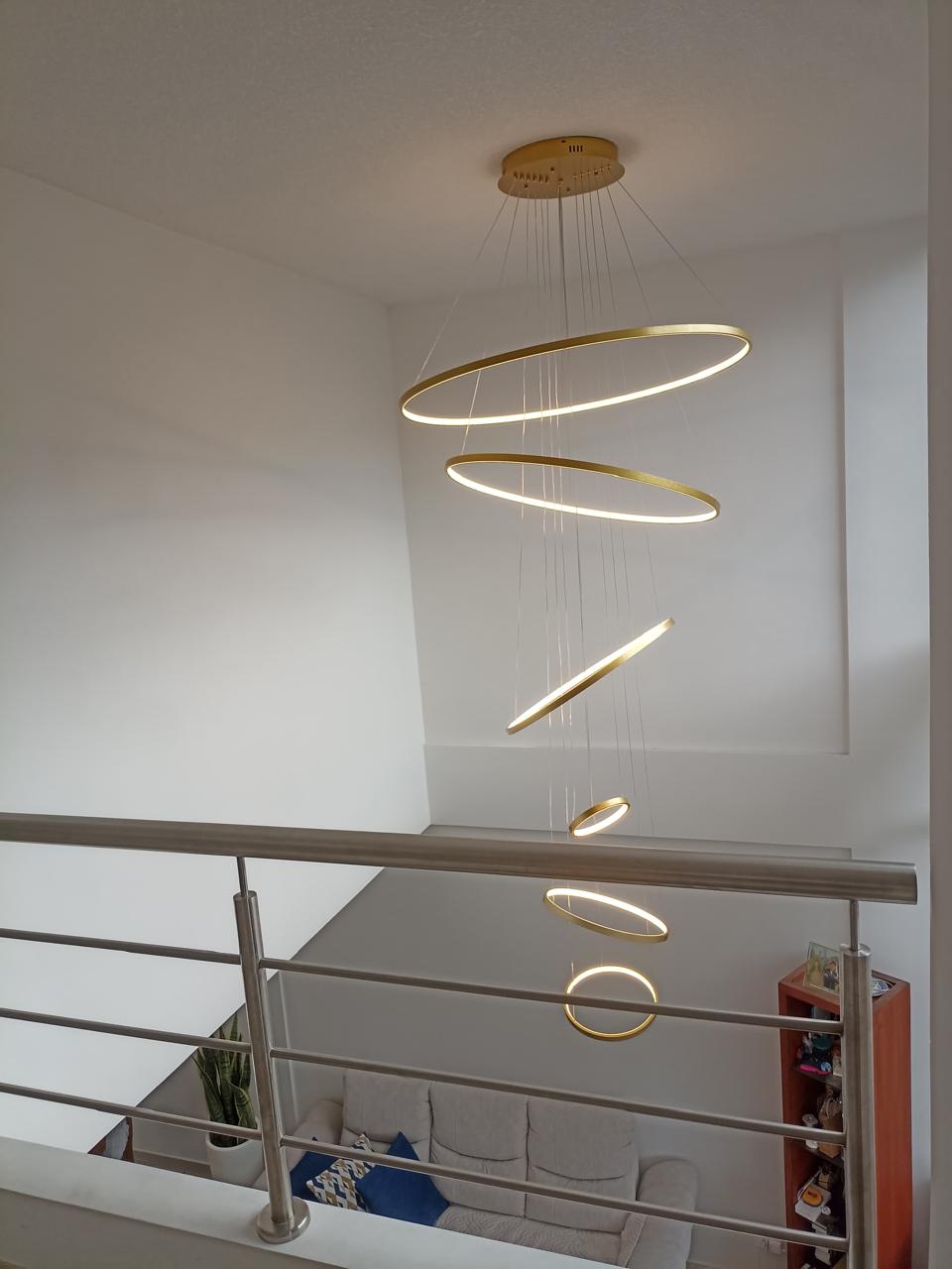 Lámpara dorada 6 aros led